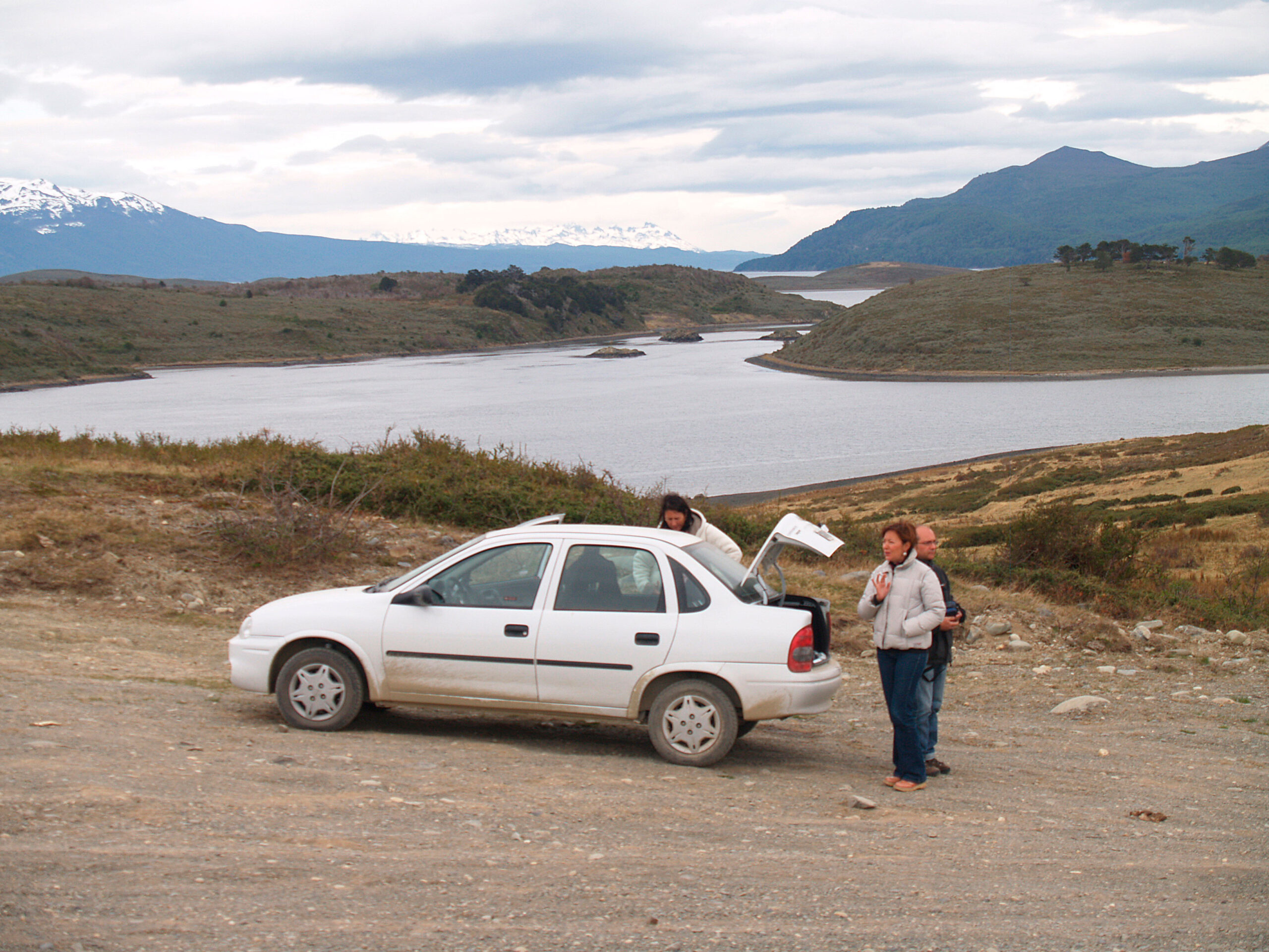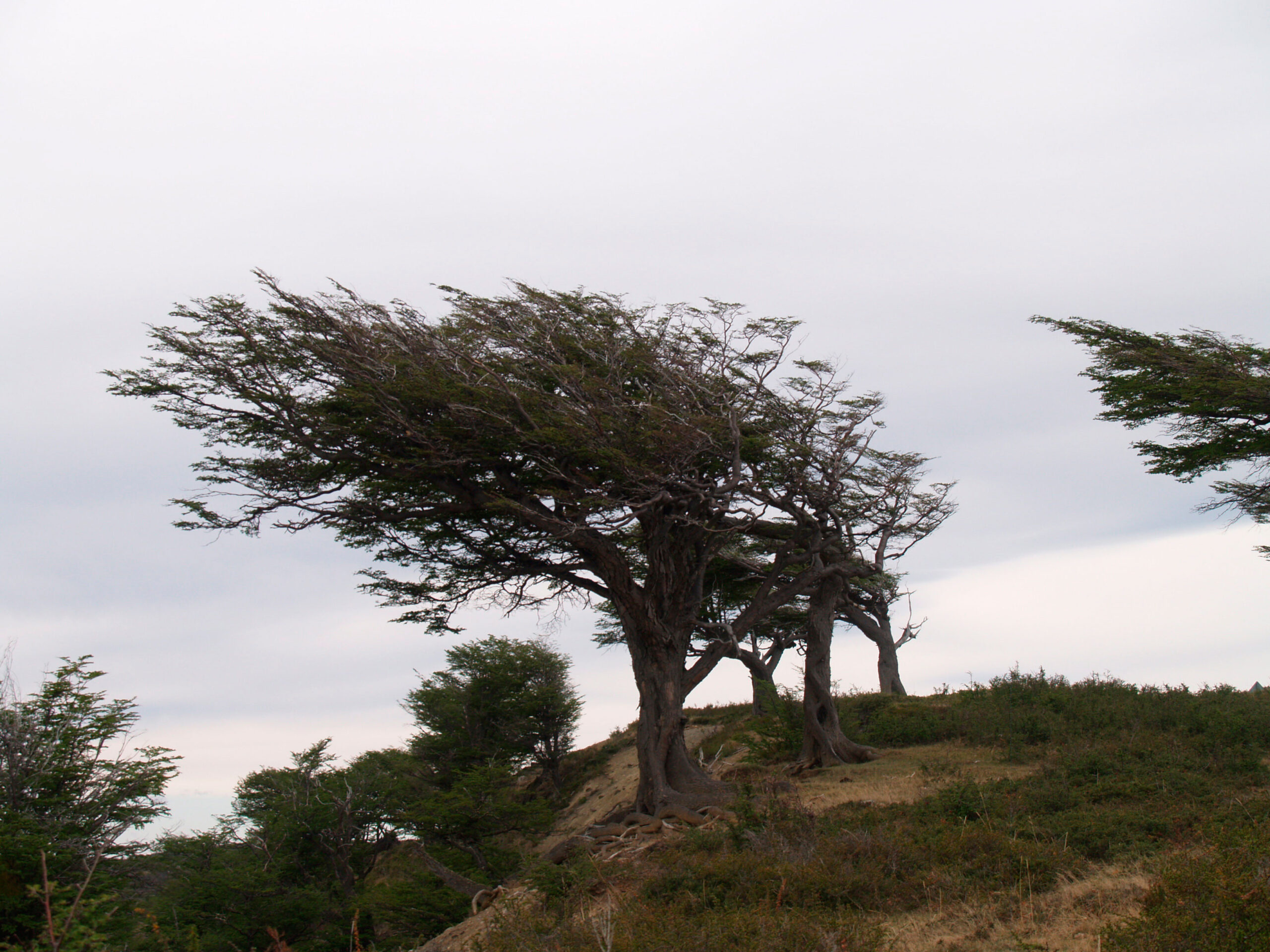De camino a ella paramos a ver los Arboles Bandera. Se trata de una especie de Coihue de Magallanes que debido a los fuertes vientos que son comunes en la región crecen en la dirección de este.